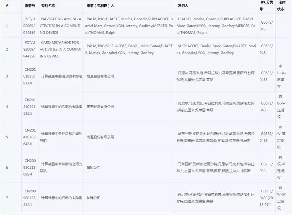 沒想到這件專利最早是來自帕姆(Palm)公司。這里面有什么故事嗎?原來,Palm品牌在 2010 年被惠普公司收購,Palm最出名的產品就是PDA和web OS智能手機。在惠普收購 Palm 之后,計劃把web OS操作系統帶到臺式機上,并向其他電腦制造商授予系統使用權,但最后,由于談判出現了一些問題,2015年惠普決定放棄了該系統,并將 Palm 拆售給了多家公司,包括高通擁有的web OS專利、LG獲得web OS智能電視授權、TCL 擁有Palm品牌。由此,我們不難理解,這件專利是怎么流轉到高通名下的。