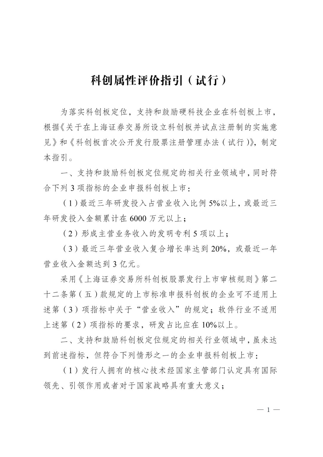 為落實科創板定位,支持和鼓勵硬科技企業在科創板上市,根據《關于在上海證券交易所設立科創板并試點注冊制的實施意見》和《科創板首次公開發行股票注冊管理辦法(試行)》,制定本指引。