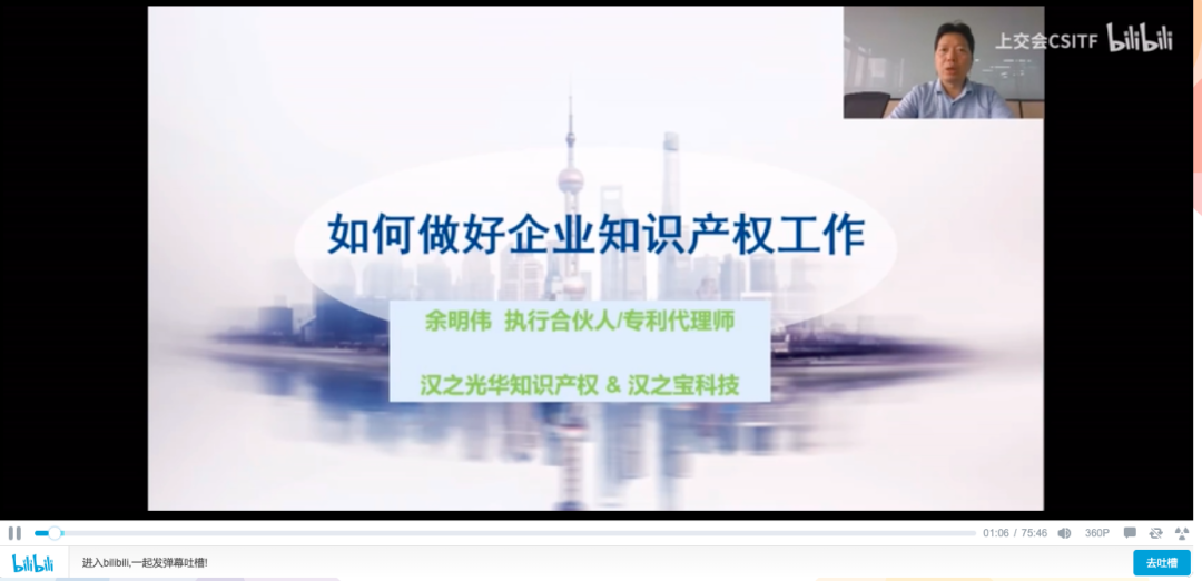 漢之光華受邀在上交會線上直播平臺開展知識產權系列分享培訓,由上海市中小企業發展服務中心主辦,漢之光華知識產權服務機構承辦,分別做了《中國專利加快審查解讀》、《如何做好企業知識產權工作》、《涉外合作協議審核的關鍵點》、《案例說明企業如何進行專利商標糾紛維權》4場精彩的線上課程。
