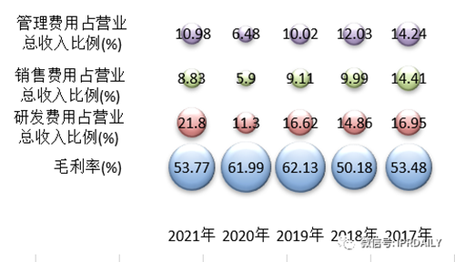 圖1 睿創微納毛利率以及各費用占比