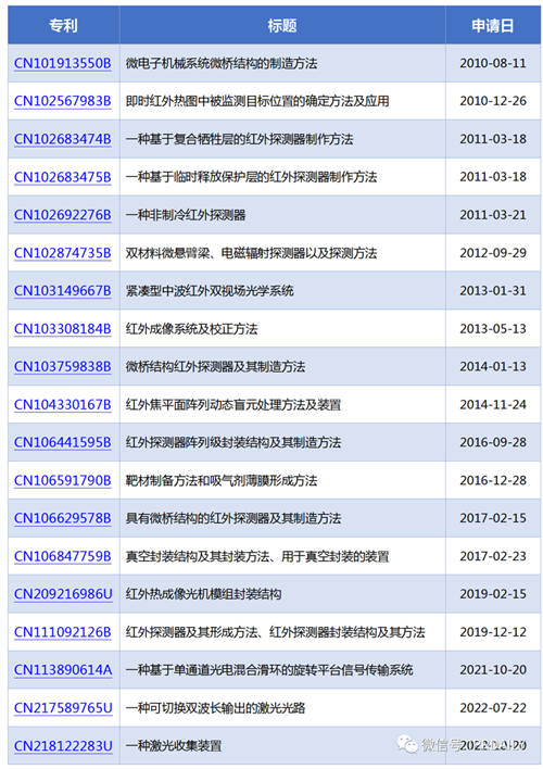 表1 睿創微納重點專利列表