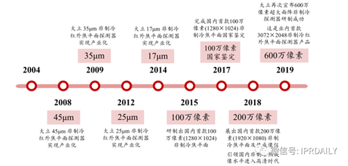 為了研究我國非制冷型民用紅外探測器技術的發展路徑,我們可以通過厘清這三家公司的專利技術演進,從而得到該技術在我國的發展歷程。