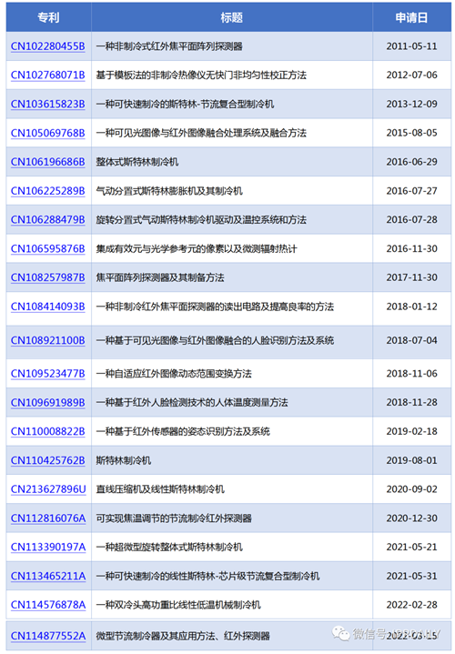 通過對公司發布的新產品新技術的研究,我們從睿創微納的專利里面可以總結出以下重點專利列表 1,按照時間排序就可以看出技術路線。