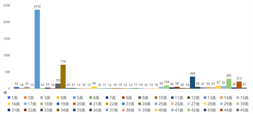 2022年,醫(yī)藥行業(yè)媒體E藥經(jīng)理人和商道咨詢聯(lián)合發(fā)布《2022中國醫(yī)藥上市公司ESG競(jìng)爭(zhēng)力TOP20》,該榜單通過對(duì)醫(yī)藥企業(yè)相關(guān)的環(huán)境(Environment)、社會(huì)(Social)、公司治理(Governance)的綜合評(píng)價(jià)(簡(jiǎn)稱“ESG”評(píng)價(jià))揭示了各個(gè)企業(yè)的競(jìng)爭(zhēng)力。其中,知識(shí)產(chǎn)權(quán)是所述ESG評(píng)價(jià)體系中的重點(diǎn)議題之一。故本所商標(biāo)代理人特地對(duì)上榜醫(yī)藥企業(yè)的商標(biāo)申請(qǐng)數(shù)量(如表1)及注冊(cè)類別(如圖1)進(jìn)行了統(tǒng)計(jì)。