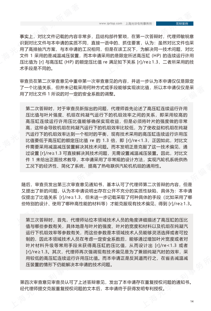 案例八介紹的案例共經歷四次審查意見:一審和二審認為本申請不具備創造性、三審認為本申請說明書公開不充分、四審認為本申請存在重復授權問題,前三次審查意見通知書指出的問題均比較尖銳,不是很好答辯,但代理師憑借出色的專業能力和有邏輯性的說理,將上述問題逐一化解,最終使本案獲得發明專利授權。