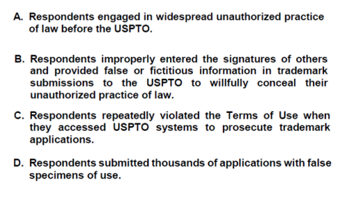 A.被申請(qǐng)人在美國(guó)專利商標(biāo)局廣泛從事未經(jīng)授權(quán)的執(zhí)業(yè)活動(dòng)