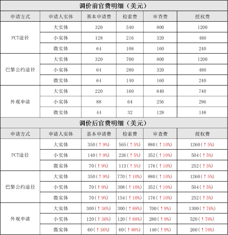 雖然本次調價仍有下調官費的項目,比如針對臨時申請案件答復的延期費,延期1~5個月的費用降幅高達75%到86%不等,但這屬于比較少見的繳費項目,對于大部分申請人而言,影響不大。