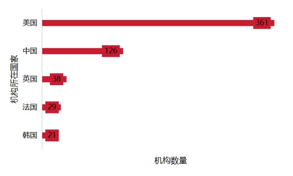 圖二 全球在研機(jī)構(gòu)所在國家/地區(qū)分布(前5名)