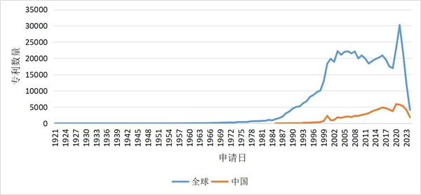 中國在抗病毒藥物領域的發展起步較晚,開始于1985年,與全球快速增長期的起始點(1985年)重合,在全球該領域的快速發展中激發了國內的研究熱潮。中國專利之后的申請趨勢與全球基本一致。