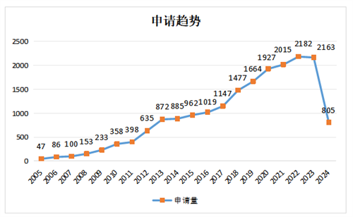 從專利類型來看,發明專利占比高達 93.67%。大量的發明專利說明企業在技術研發方面投入較大,并且取得了顯著的成果。這也預示著在未來的發展中,企業可能會繼續保持較強的創新活力和市場競爭力,推動技術進步和產業發展。