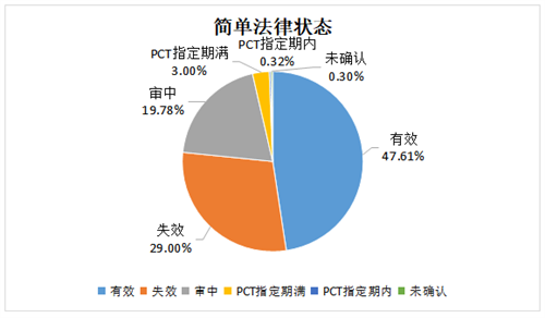 從法律狀態來看,有效專利所占比例為47.61%,接近一半的專利依然保持有效狀態。這一數據反映了企業對專利價值的重視,以及愿意支付維持費用以保障專利的持續有效性。